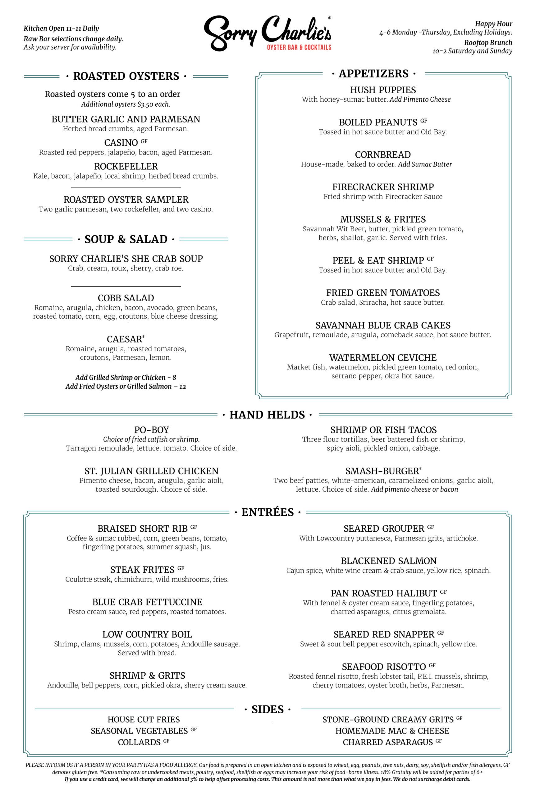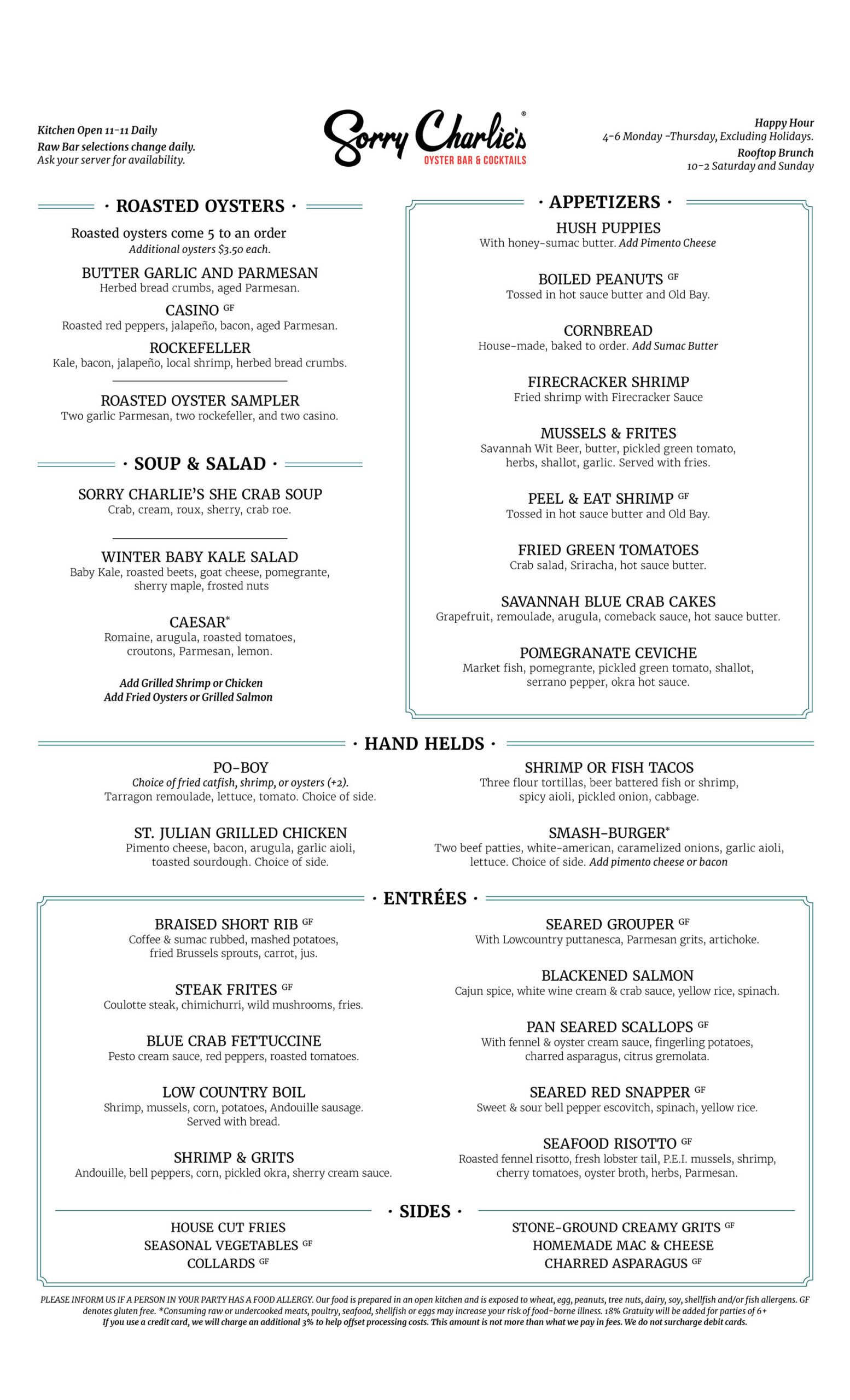 Fresh, local seafood is abundant at Sorry Charlie’s. We take pride in using fresh ingredients from local purveyors and of course, our local waters. In fact, we now have our own oyster farm where we grow them just a few miles away.